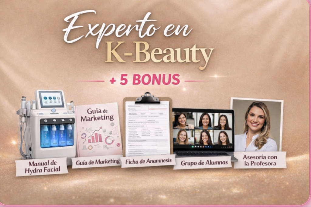 1. Fundamentos de la cosmética coreana profesional. Aprenderás la verdadera filosofía de la K-Beauty y cómo aplicarla de forma estratégica.Entenderás cómo trabajar la piel desde la reparación de la barrera cutánea, logrando resultados visibles, progresivos y duraderos, sin agredir la piel.